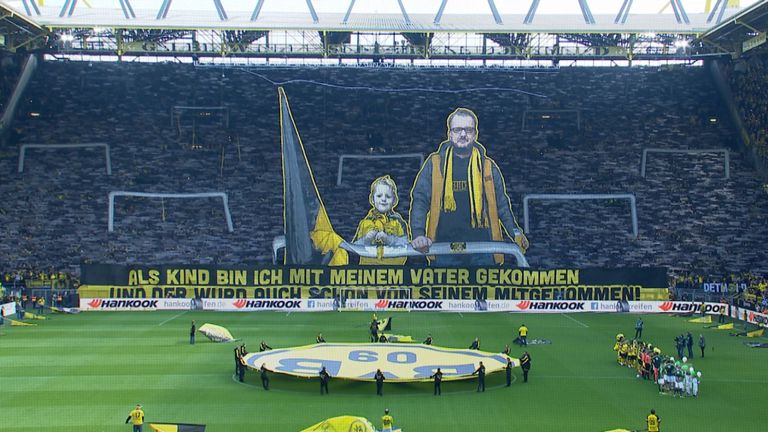 Вболівальники «Боруссії» розтягнули на трибунах банер «Мене привів на трибуну батько. Так само, як і його привели колись».