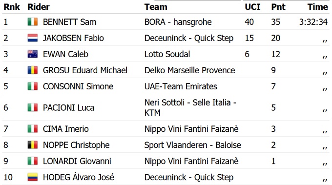Ірландець Сем Беннетт став переможцем першого етапу багатоденки Тур Туреччини. У фінішному спринті гонщик Bora Hansgrohe випередив Фабіо Якобсена і Калеба Юена.