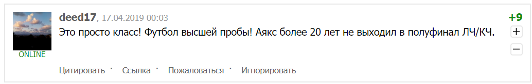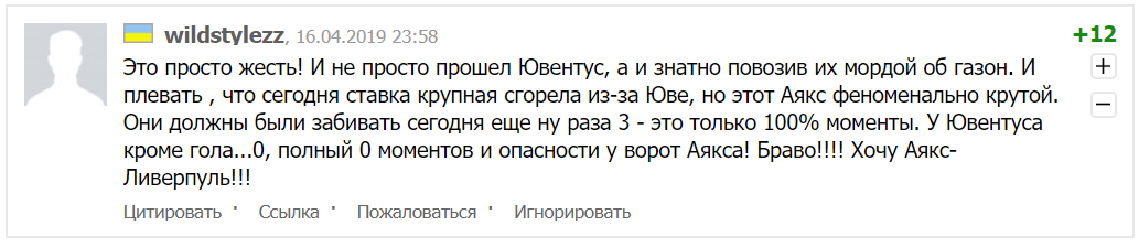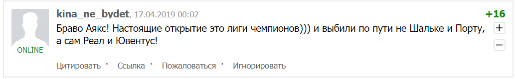 У матчі-відповіді 1/4 фіналу проти «Ювентуса» клуб з Нідерландів пропустив першим, після чого показав фантастичний рівень гри на «Ювентус Стедіум», заслужено обігравши господарів поля з грізним Кріштіану Роналду в складі.