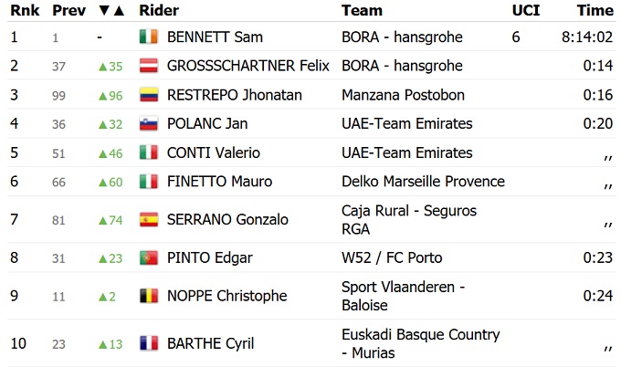 Слідом за першим етапом Туру Туреччини Сем Беннет переміг і на другому етапі багатоденки. У фінішному спринті ірландець випередив партнера по Bora Hansgrohe Фелікса Гроссшартнера і колумбійця Джонатана Рестрепо.
