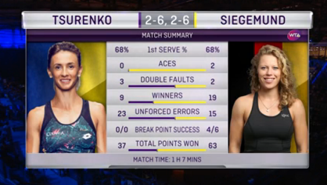 У першому сеті Цуренко вдалося взяти лише стартовий гейм. Після цього німкеня виграла 6 геймів підряд. Зігемунд відмінно відчувала себе на кортах Штутгарта, де вона двічі доходила до фіналу (2016 і 2017 роки). Леся сьогодні грала дуже просто і прямолінійно, в той час як її суперниця показувала теніс дуже пристойного рівня.