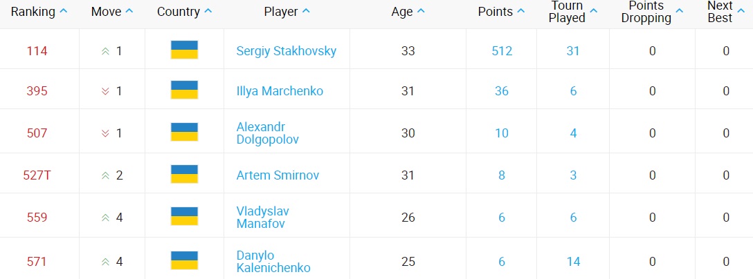 Що стосується українців, то тут без особливих змін. Відзначимо, що Сергій Стаховський піднявся на одну позицію.