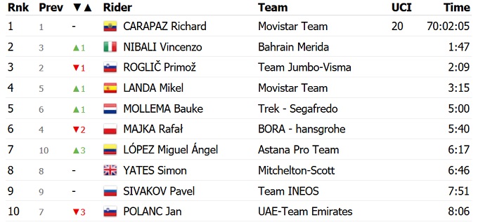 Джуліо Чікконе з Trek Segafredo став переможцем 16-го етапу Джиро д'Італія-2019. Прімож Рогліч програв групі Річарда Карапаса і Вінченцо Нібалі 1 хвилину і 22 секунди і відступив на третє місце в загальному заліку.