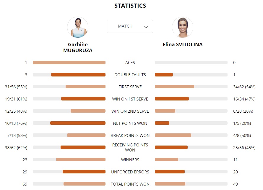 Еліна Світоліна (Україна) - Гарбінє Мугуруса (Іспанія) - 3:6, 3:6