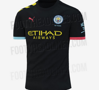 У мережі з'явилися фотографії виїзної форми англійського «Манчестер Сіті» на наступний сезон. В гостях «городяни» гратимуть в чорних футболках з різнобарвною окантовкою на рукавах.