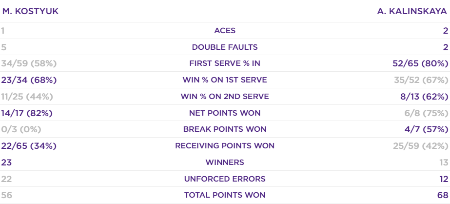 Марта Костюк (Україна) - Анна Калінська (Росія) - 1:6, 5:7