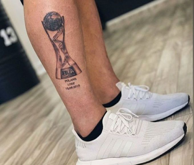 Захисник «Динамо» і збірної України U-20 Денис Попов зробив татуювання на честь перемоги команди на недавньому чемпіонаті світу в Польщі.