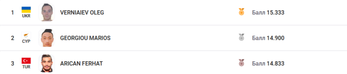Спортсмен отримав найвищий бал за підсумками вправ на брусах.