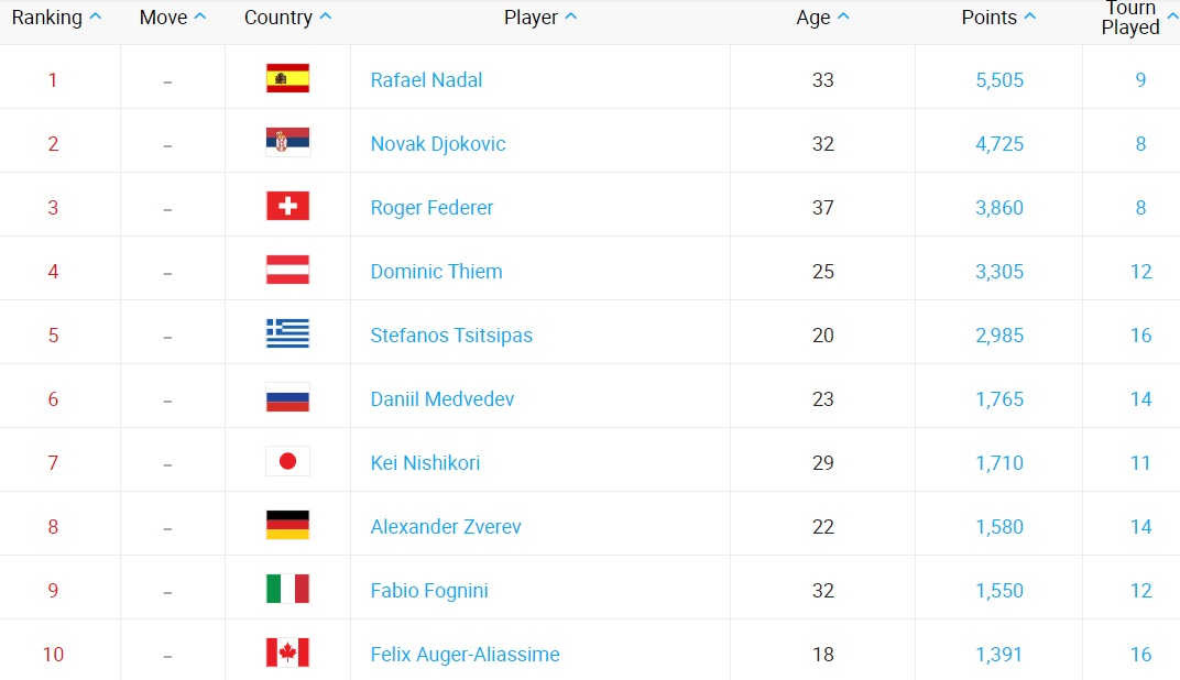 Топ-10 рейтингу ATP