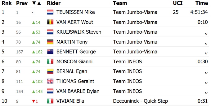 Голландська команда Jumbo Visma стала переможцем командної розділки на 27 км в Брюсселі на другому етапі Тур де Франс-2019. Лідером загального заліку залишився переможець першого етапу Міке Тойніссен, який також представляє Jumbo Visma.
