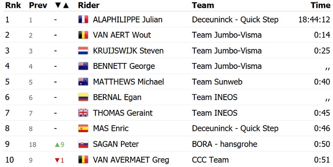 Лідером загального заліку залишився Жуліан Алафіліпп