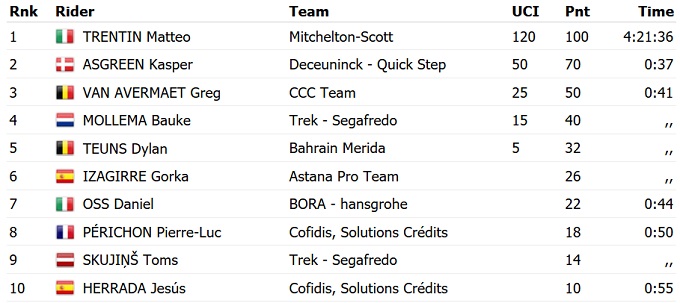 Італійський гонщик Mitchelton Scott Маттео Трентін став переможцем 17-го етапу Тур де Франс-2019. Лідерство в загальному заліку зберіг Жуліан Алафіліпп.