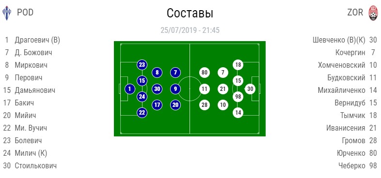 Стали відомі стартові склади першого матчу другого кваліфікаційного раунду Ліги Європи «Будучност» — «Зоря».