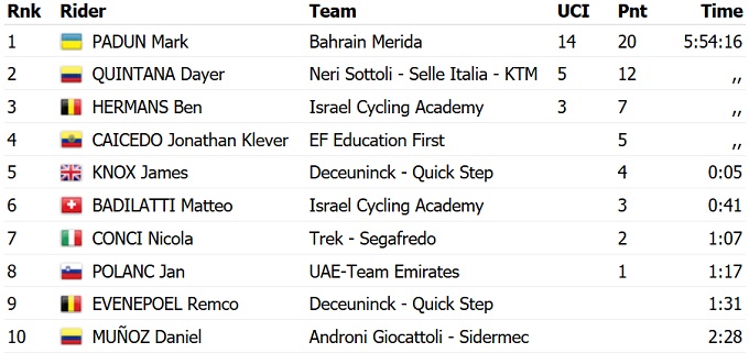 Єдиний представник України в Світовому Турі, Марк Падун, став переможцем другого етапу багатоденки Адріатика Іоніка. Етап фінішував на легендарному підйомі Тре Чіме ді Лаваредо в Італії.