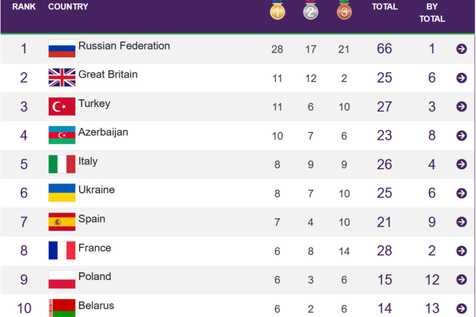 У загальному заліку Україна фінішувала 6-ю серед 36-ти країн.