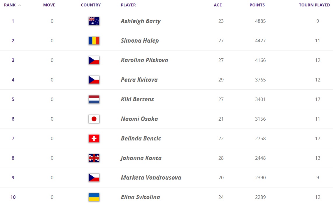 У Чемпіонській гонці ще один тиждень без особливих змін. Світоліна поки десята, але відставання можна нівелювати вже на турнірі в Сан-Хосе.