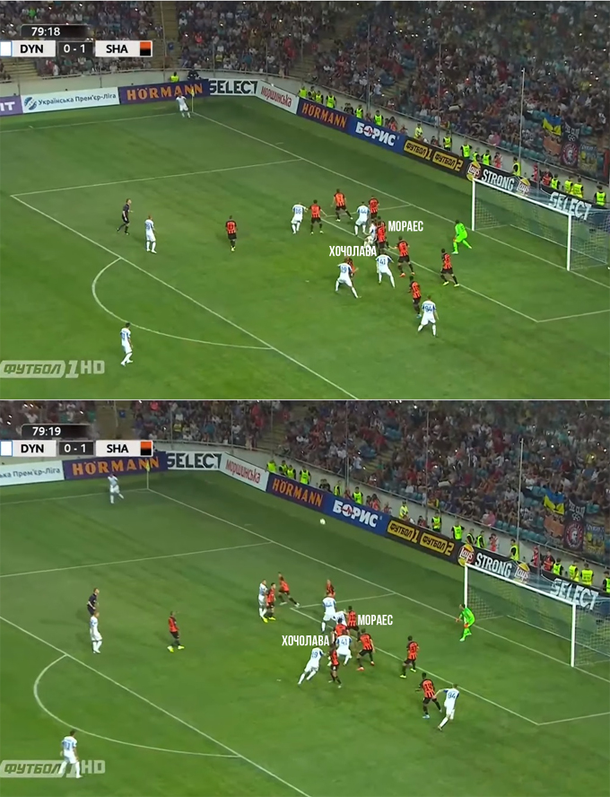 Власне, розв'язка і настала ближче до кінцівки, коли «Шахтар» в якійсь мірі сам себе заколисав. Найбільше заспокоївся, очевидно, Хочолава, чиї катастрофічні дії протягом трьох хвилин і привели до поразки його команди. Спершу грузинський центрбек на 80-й хвилині зобразив спробу боротьби при подачі «динамівцями» кутового. Хочолава, який на початку епізоду стояв поруч з Мораесом і опікав високого Бурду, через секунду здійснив легкий поштовх суперника вперед, а сам відсторонився від боротьби. У підсумку бразилець з українським паспортом прогнозовано програв «другий поверх» супернику, а той завдав точного удару головою в дальній кут. У зв'язку з цим претензії Кривцова до колеги по центру оборони, що послідували відразу після першого м'яча «Динамо», виглядають цілком логічними та зрозумілими.