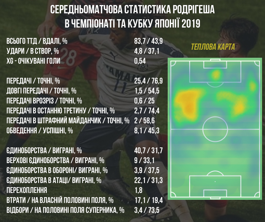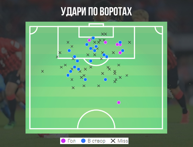 Також з позитивної точки зору можна виділити націленість Жерсона Родрігеша на ворота суперника. В середньому в Японії він за матч наносив майже по 5 ударів по воротах! Їх точність у Жерсона, звичайно, не сама найкраща, проте гостроту люксембуржець привносив вельми серйозну, що відображає показник очікуваних голів.