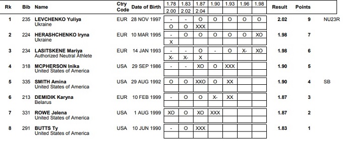 Українка Юлія Левченко виграла змагання зі стрибків у висоту в рамках матчевої зустрічі Європа - США в Мінську. Українка побила особистий рекорд, взявши висоту 2,02 м.