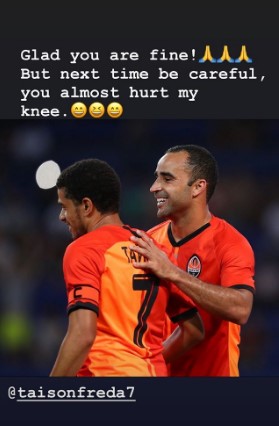 «Радий, що з тобою все добре. Але наступного разу будь обережнішим, ти ледь не пошкодив моє коліно», - написав у сторіс в Instagram Ісмаїлі.