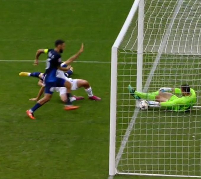 В кінці першого тайму на «Олімпійському» динамівцям вдалася гарна атака. Караваєв навішував на Де Пену, який з близької відстані розстрілював ворота Паста. Воротар «Десни» зафіксував м'яч, як здалося, вже за лінією.