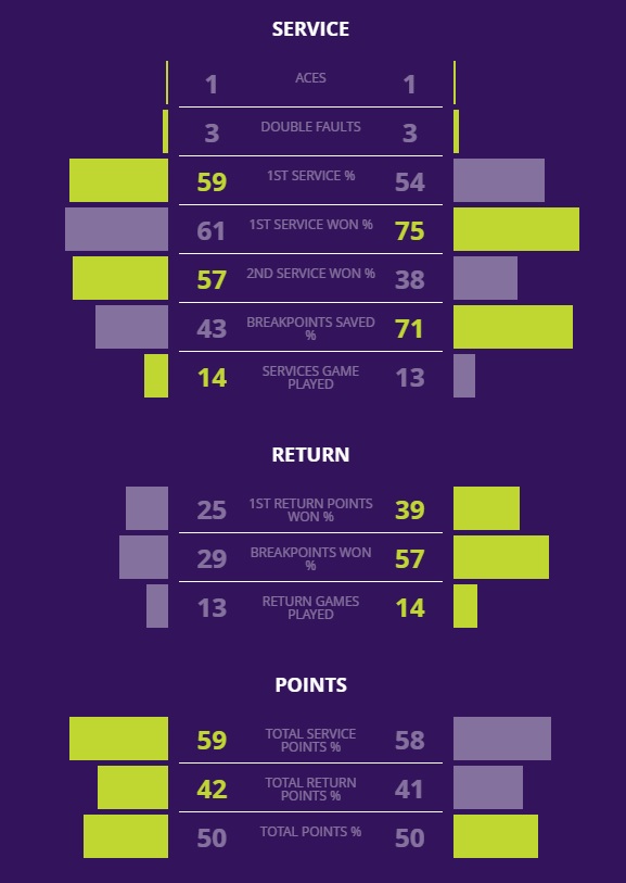 Матч призупиняли через дощ у другому сеті. У третій партії Катаріна мала подвійний матчбол в дев'ятому геймі, але француженка зуміла продовжити поєдинок ще на один гейм. З п'ятого матчбола українка завершила поєдинок перемогою.