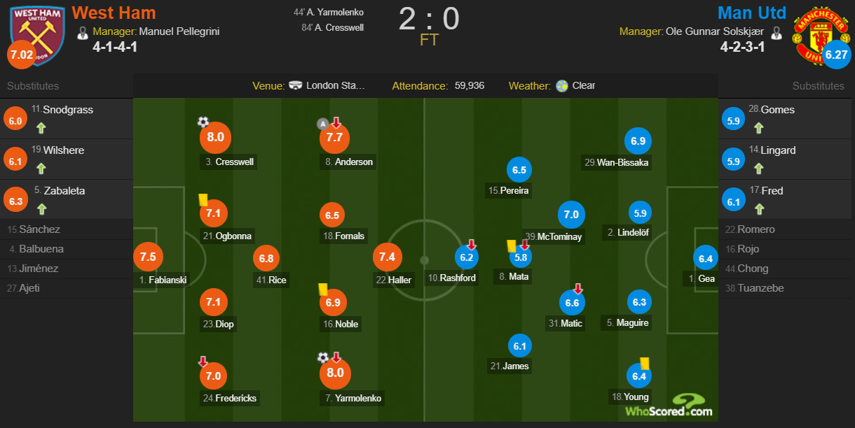 У матчі 6-го туру англійської Прем'єр-Ліги «Вест Хем Юнайтед» обіграв «Манчестер Юнайтед». Зустріч проходила в Лондоні на стадіоні «Олімпійський». Підсумковий рахунок матчу - 2:0.
