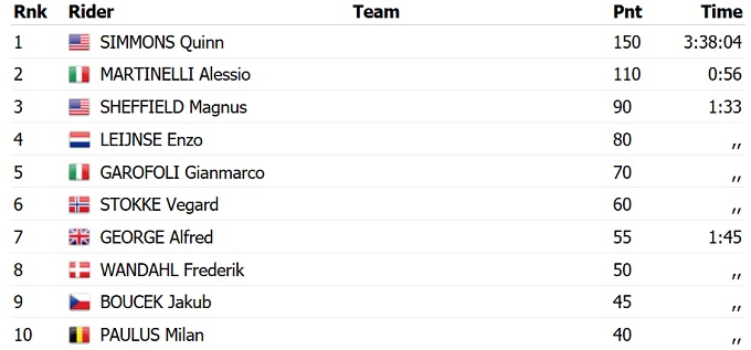 Куінн Сіммонс виграв групову гонку серед чоловіків до 19 років