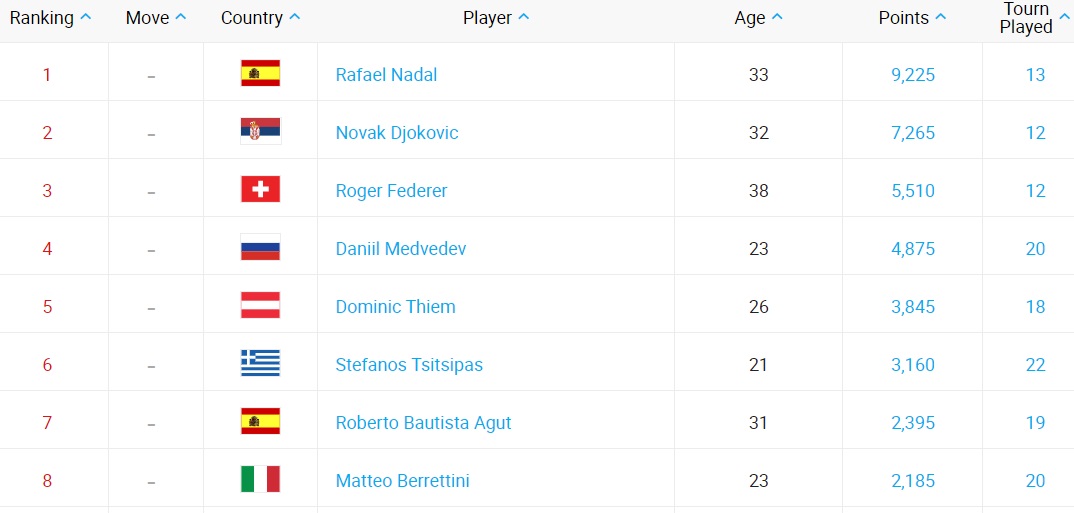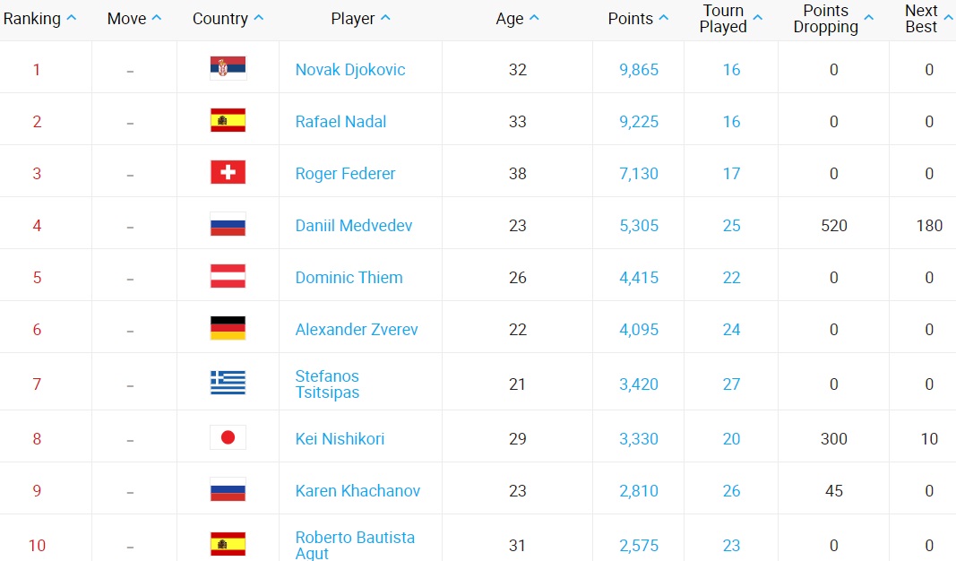В першій десятці без змін, Гаель Монфіс піднявся на одинадцяте місце, обійшовши Фабіо Фоньїні.