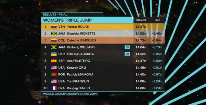 За підсумком в фіналі українка показаза 5-й результат, а золото виграла представниця Венесуели Юлімар Рохас.