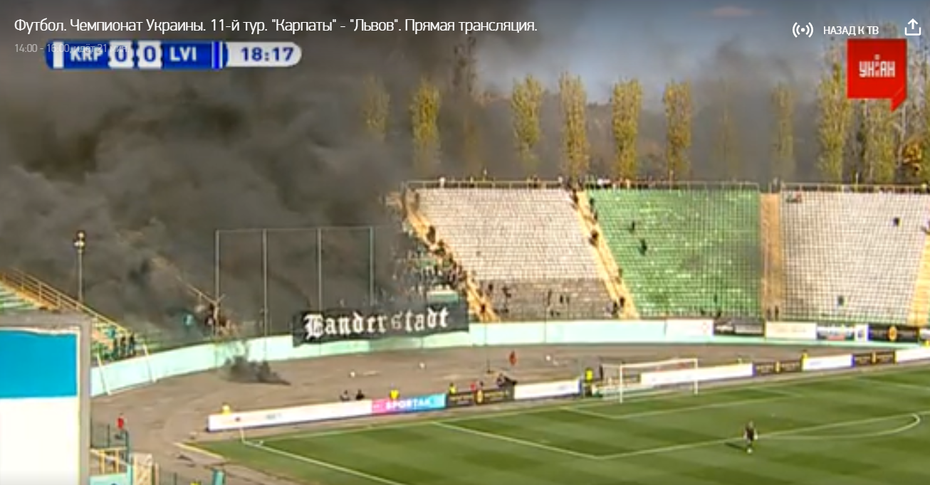 Матч Карпати – Львів був перерваний через піротехніку на трибунах