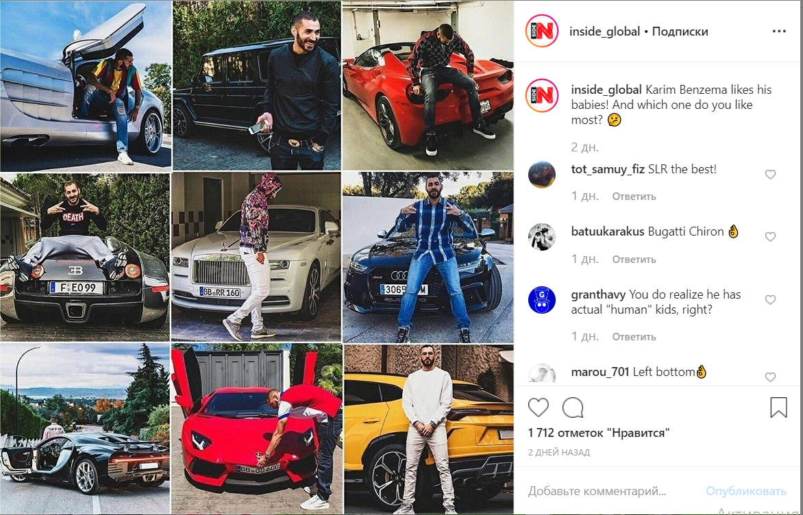 Форвард мадридського Реала Карім Бензема дуже любить і цінує авто. У нього їх ціла колекція.