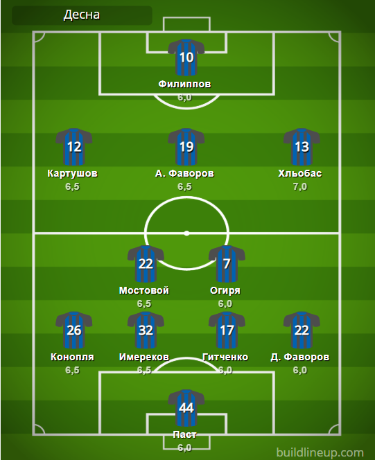 Заміни Десни: Калитвінцев – 5,5, Дегтярьов – б/а.