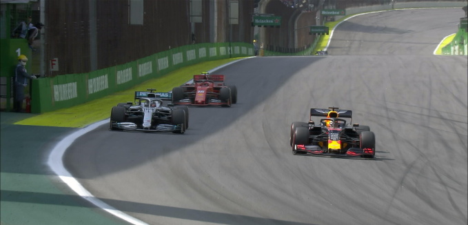 Старт Гран-прі Бразилії повністю залишився за Максом Ферстаппеном. Пілот Ред Булла зберіг своє лідерство і поїхав у відрив. Себастьян Феттель стартував невдало і поступився 2-м місцем Льюїсу Хемілтону. Відзначаємо Шарля Леклера, який проривався з 14-го місця і за кілька кіл увійшов в топ-7.