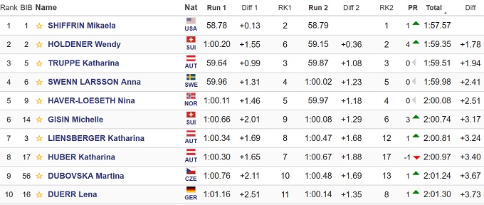 Шиффрін виграла слалом в Леві