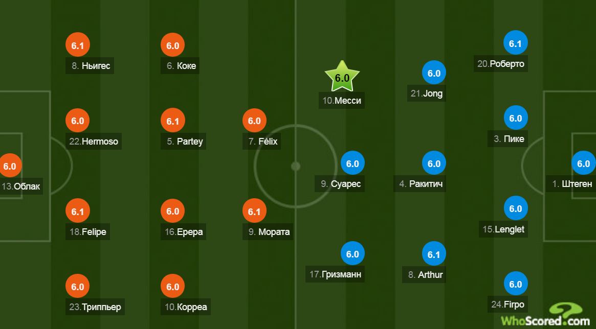 Сімеоне вважав за краще не випускати молодого Лоді на фланг проти Мессі, а довірив місце лівого захисника більше дисциплінованому Саулю. У атакуючій парі діяли Мората і Фелікс.
