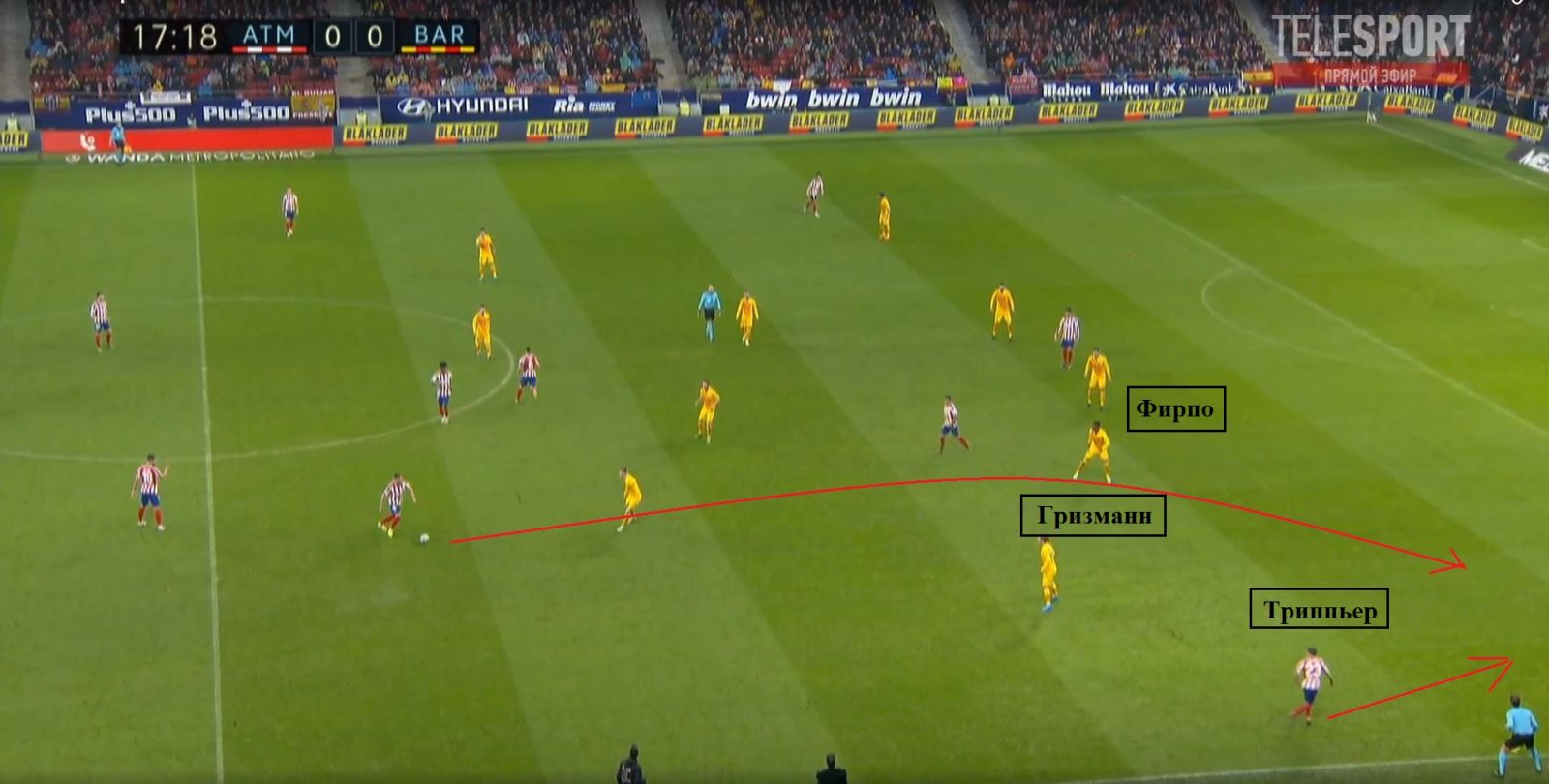 Окрім двох епізодів із втратою м'яча в опорній зоні, «Атлетико» зміг змусити помилятися Фірпо, який був слабкою ланкою в усій системі «Барселони». Під тиском він часто робив неточні передачі, втрачав м'яч або зовсім здійснював фоли поблизу власного штрафного.