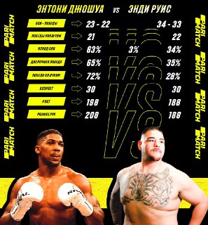 Якщо порівнювати боксерів, Енді не особливо схожий на спортсмена, хоча він і зганяв активно вагу перед реваншем. Джошуа ж вище, з більшим розмахом рук, швидше, більш технічний... але все одно програв у 7-му раунді минулого разу. У Руїса важкий удар, він не боїться йти у відкриту на суперника. Варто забаритися і пропустити – бій закінчено.