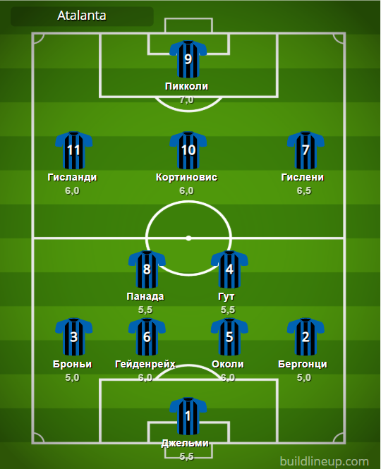 Аталанта U-19: Джельмі – Броньї, Гейденрейх, Околі, Бергонці – Панада (Фінарді, 77), Гут – Гісланді, Кортіновіс (Мілані, 90), Гіслені (Сідібе, 77) – Пікколі.