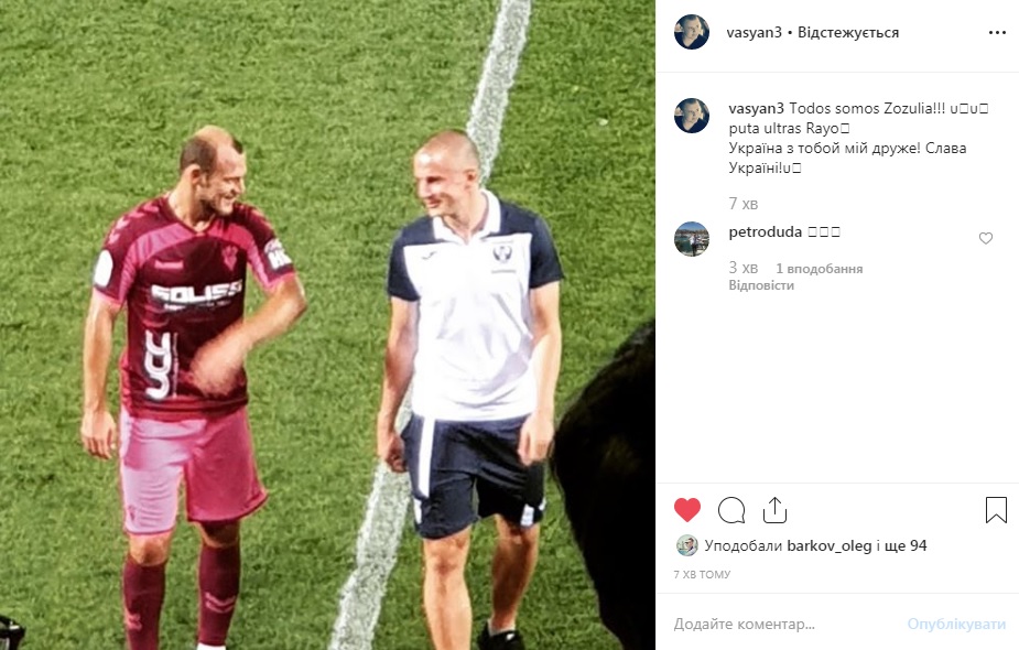 «Ми всі Зозуля. Ультрас «Райо» - повії. Україна з тобою, мій друг. Слава Україні», - написав Кравець в Instagram.