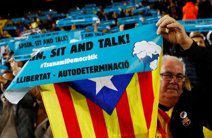 BREAKING: Pro-independence protesters stop the Clásico football match by throwing inflatable balls. pic.twitter.com/HxQ8S3zBip