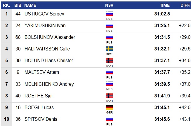 Йоханнес Клебо зайняв тільки 17-те місце з відставанням в 1 хвилину і 11 секунд і опустився на третє місце в загальному заліку.