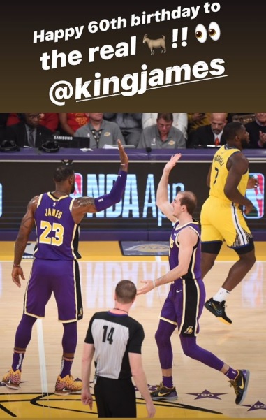 «З 60-річчям по-справжньому видатного гравця всіх часів, короля Джеймса», - написав Карузо в Instagram.