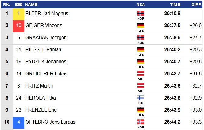 Норвезький двоборець Ярл Магнус Ріібер виграв особистий Гундерсен на етапі Кубка світу в Валь ді Ф’ємме (Італія). Він випередив Вінценца Гайгера і Йоргена Гробака.
