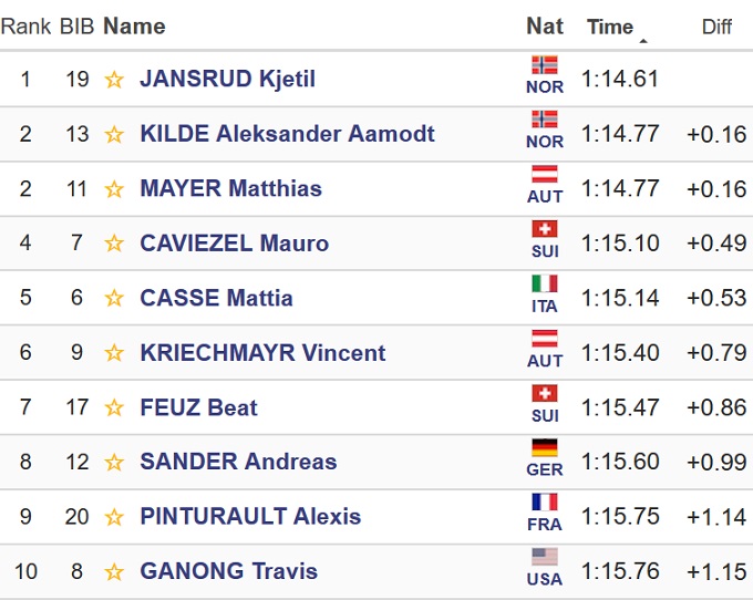 Друге місце поділили Маттіас Майер і Александер Омодт Кілде