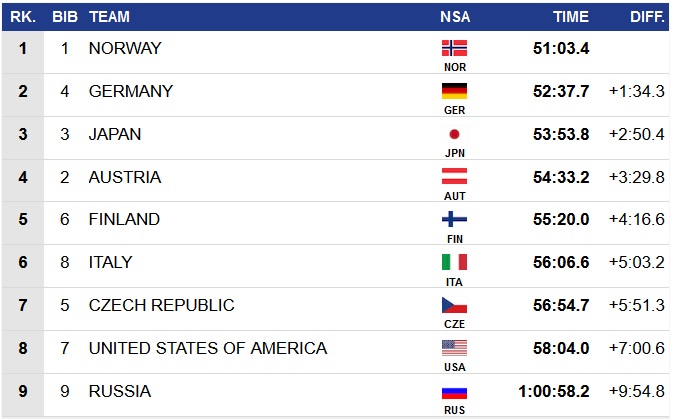 Збірна Норвегії з двоборства впевнено виграла командний турнір на етапі Кубка світу в німецькому Оберстдорфі. Другою стала збірна Німеччини.