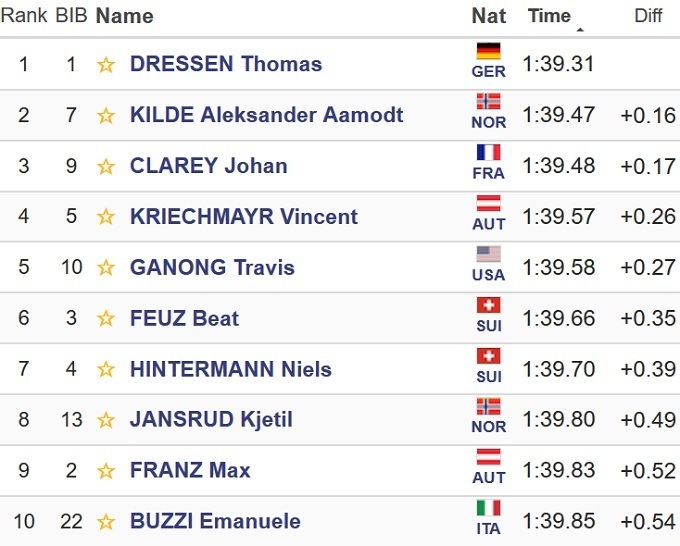 Німецький гірськолижник Томас Дрессен виграв швидкісний спуск на етапі Кубка світу в Гарміш-Партенкірхені. Він випередив Александера Омодта Кілде і Йохана Кларе.