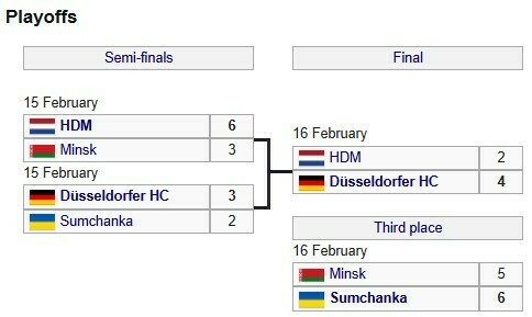 У нідерландській Гаазі завершився розіграш Кубка європейських чемпіонів серед жіночих команд. 16 лютого відбулися вирішальні матчі. У поєдинку за бронзу зустрілися МСК «Сумчанка» (Україна) і ХК «Мінськ» (Білорусь).