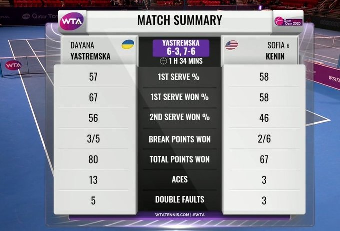 Відмінний матч за участю Даяни, який вселяє обережний оптимізм перед наступними поєдинками. Якщо Ястремській вдасться подавати весь матч з успішністю сьогоднішнього першого сету, у неї будуть шанси обіграти абсолютно будь-яку тенісистку в турі.