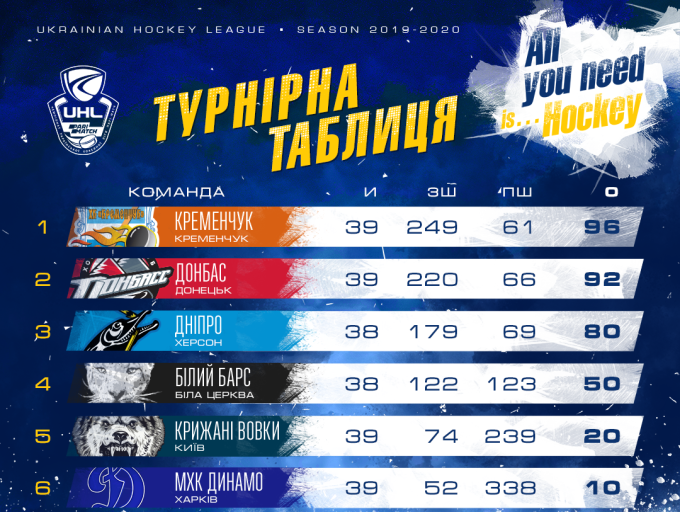 УХЛ. Кременчук закинув 14 шайб і виграв регулярку. Донбас - 2-й